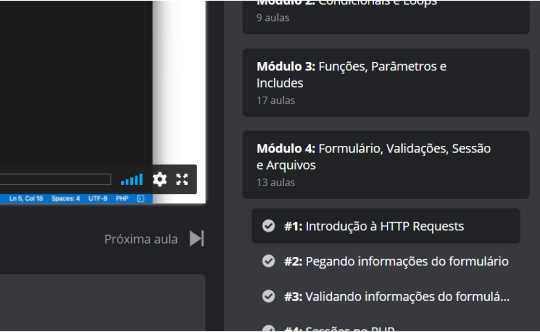 Nessa tela você terá acesso direto a todos os nossos módulos e suas respectivas aulas. É um