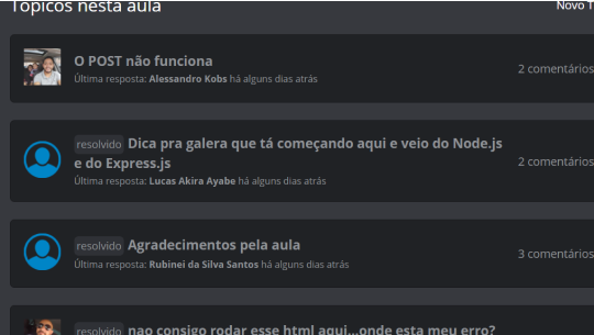 Inclusive, todas as aulas tem um campo para dúvidas.